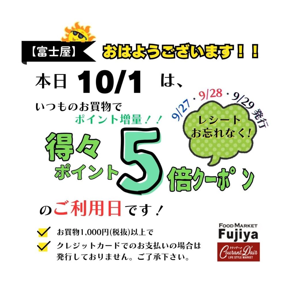 10月1日〈得々ポイント5倍クーポン〉ご利用日