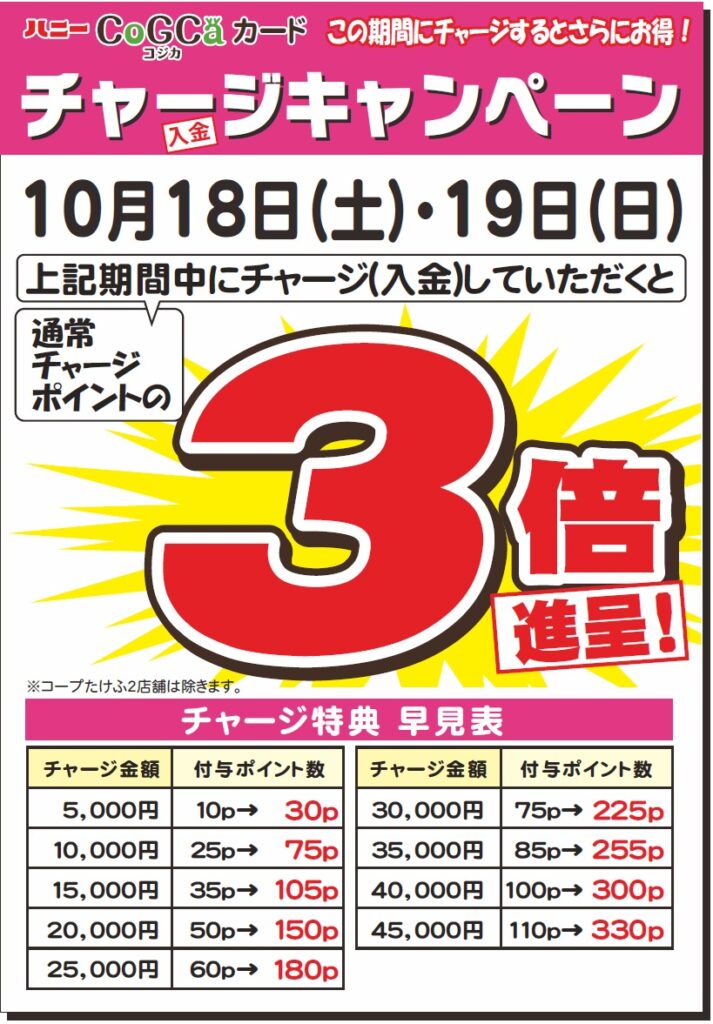 10月18日・19日〈コジカチャージキャンペーン3倍〉進呈