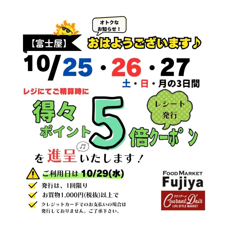 10月25日・26日・27日〈得々ポイント5倍クーポン〉進呈
