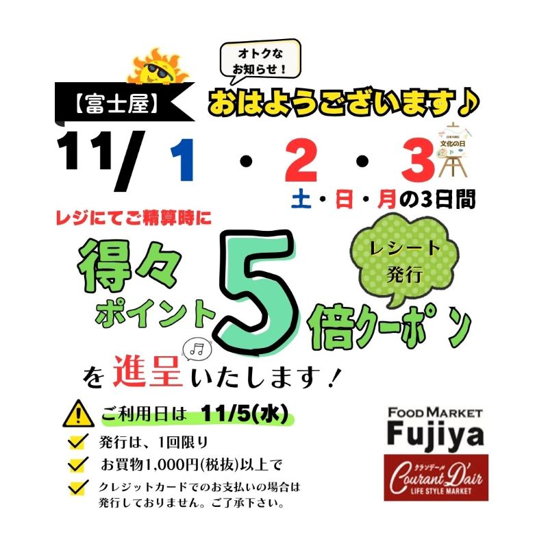 11月1日・2日・3日〈得々ポイント5倍クーポン〉進呈