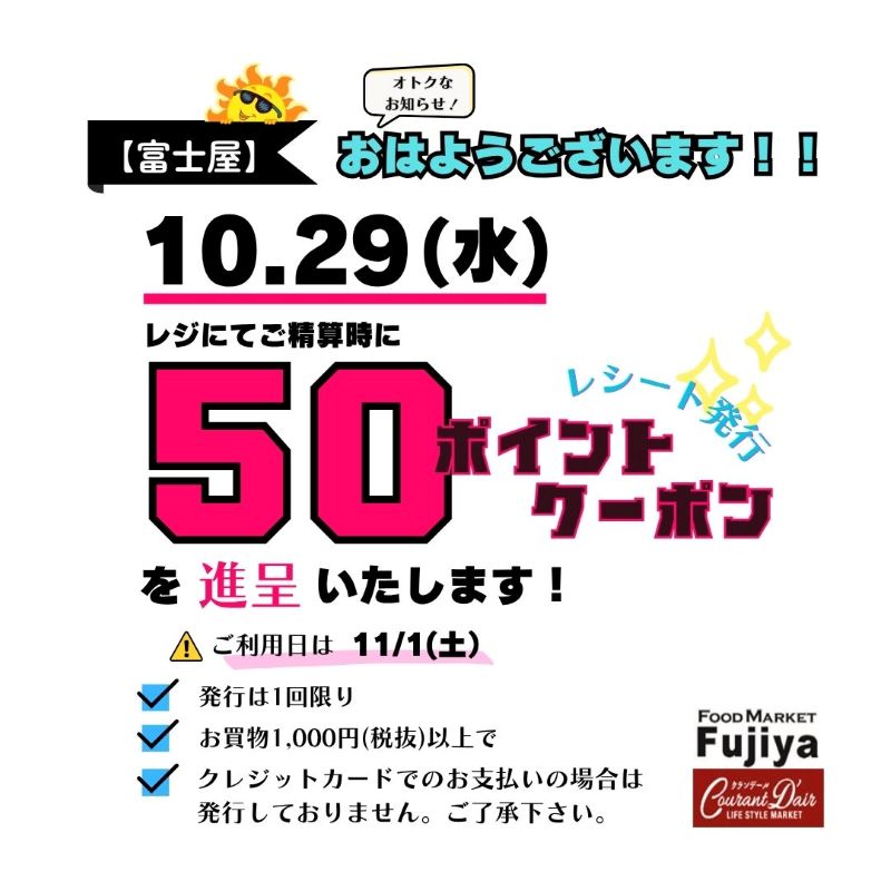 10月29日〈50ポイントクーポン〉進呈
