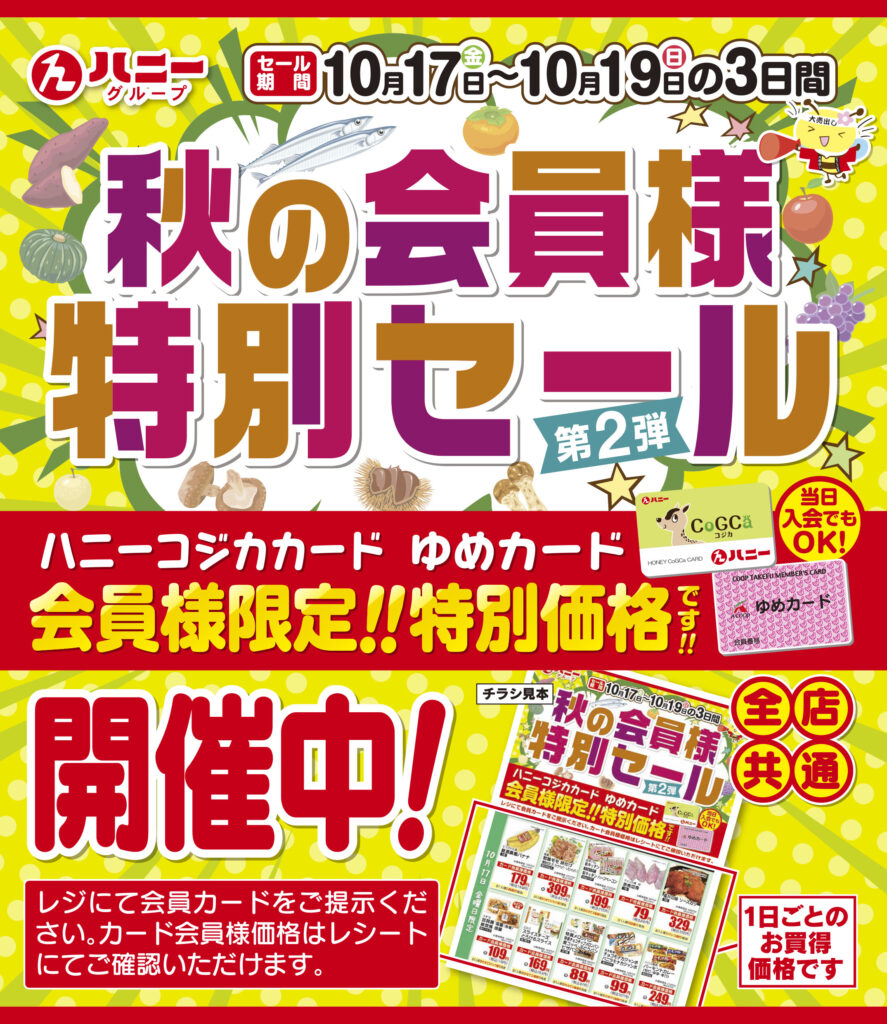 10月17日~19日〈秋の会員様特別セール第2弾〉開催中