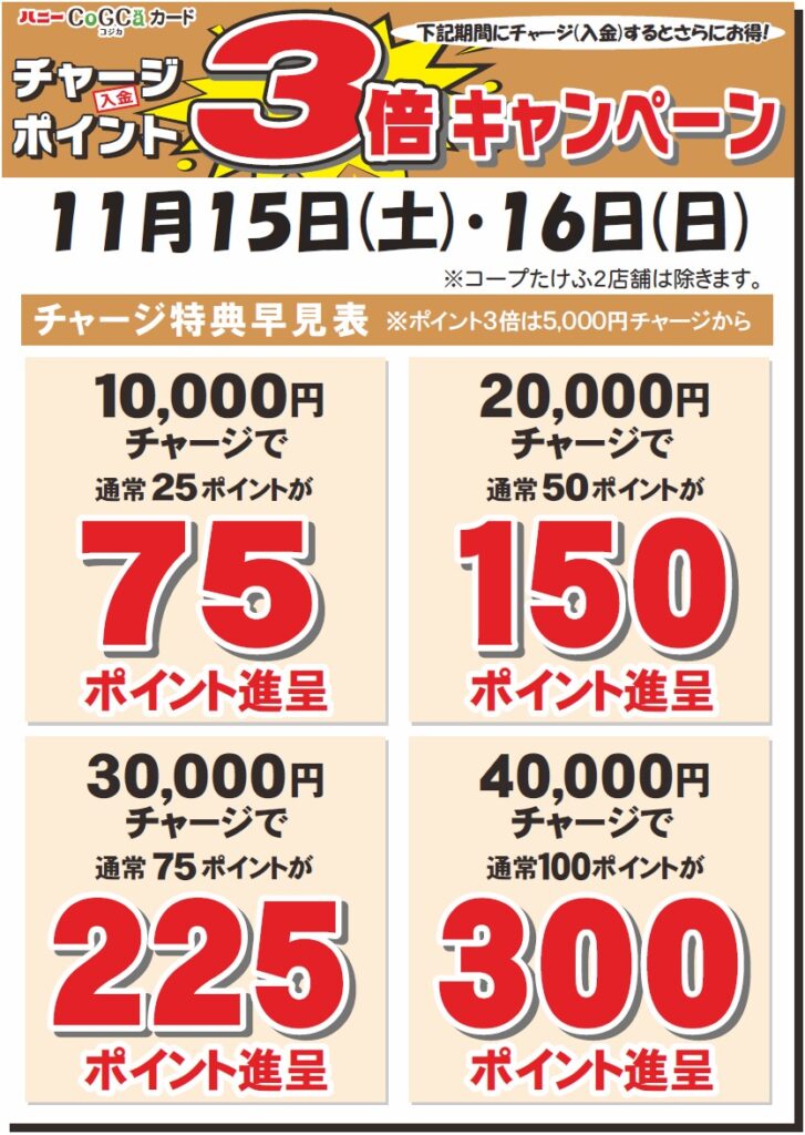 4. 11月15日・16日〈コジカチャージキャンペーンポイント3倍〉進呈