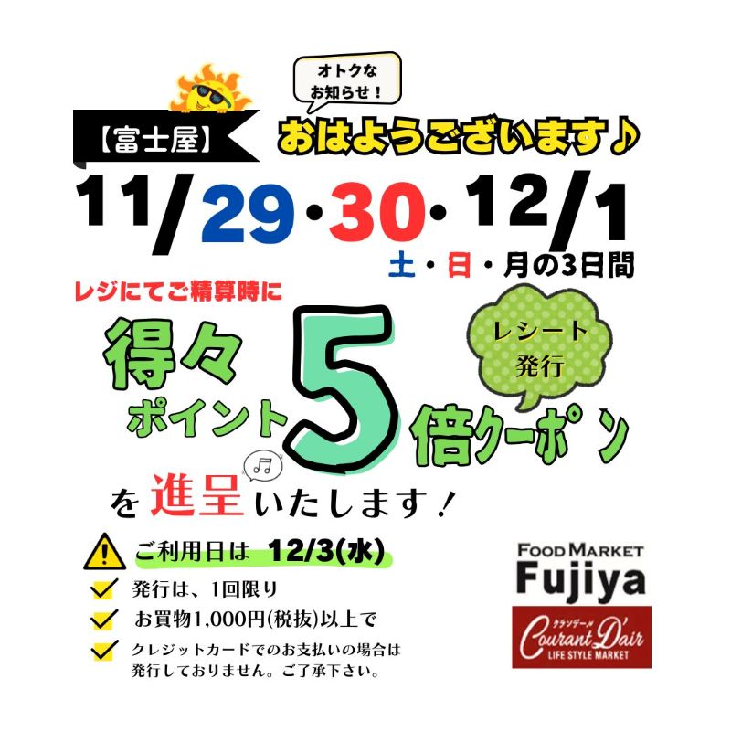 11月29日・30日・12月1日〈得々ポイント5倍クーポン〉進呈