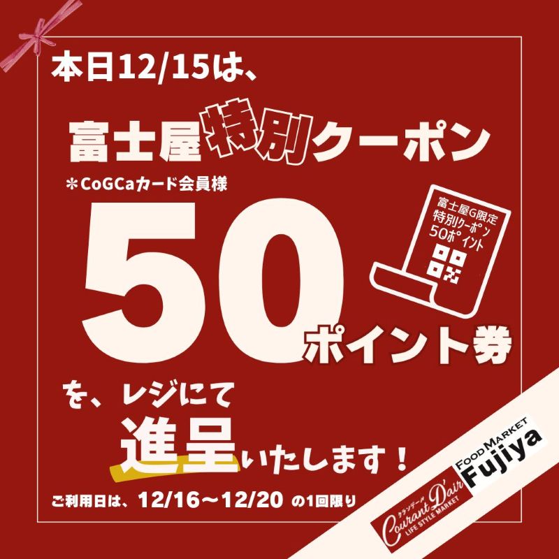 12月15日〈富士屋特別50ポイントクーポン〉進呈