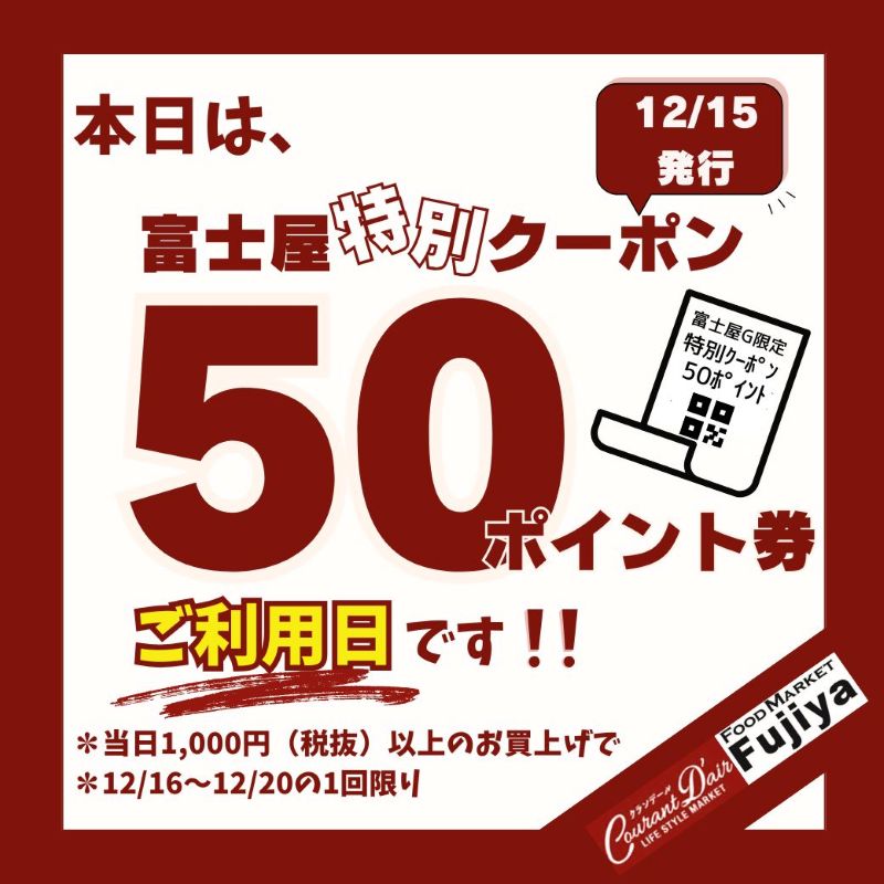 12月16日~20日〈富士屋特別50ポイントクーポン〉ご利用日