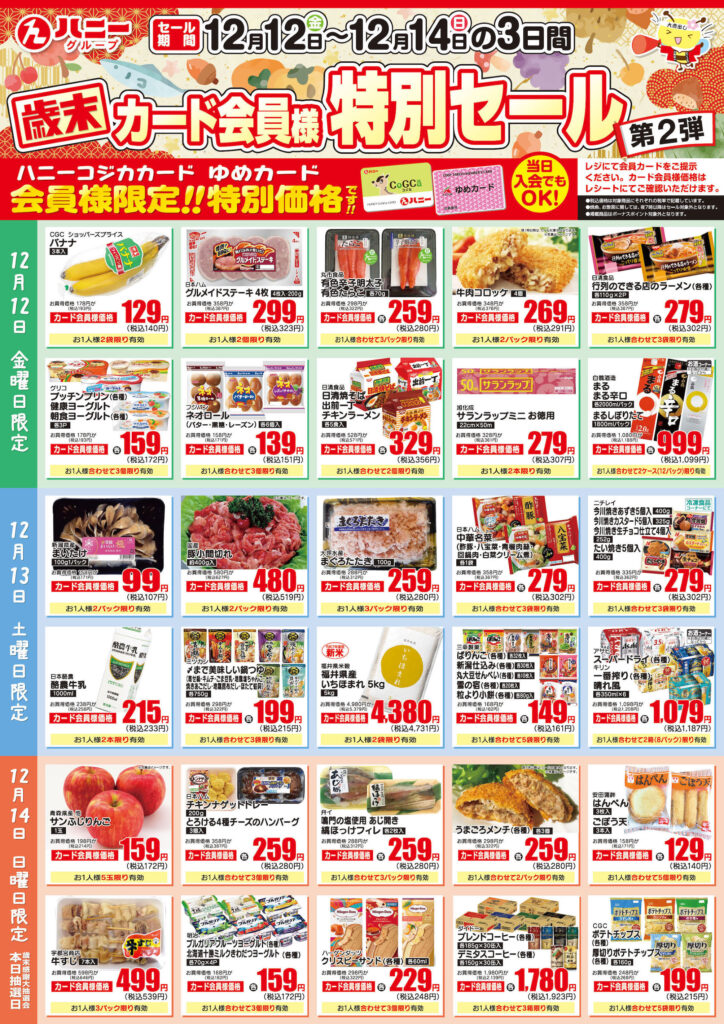 12月12日~12月14日〈歳末カード会員様特別セール〉第2弾開催中