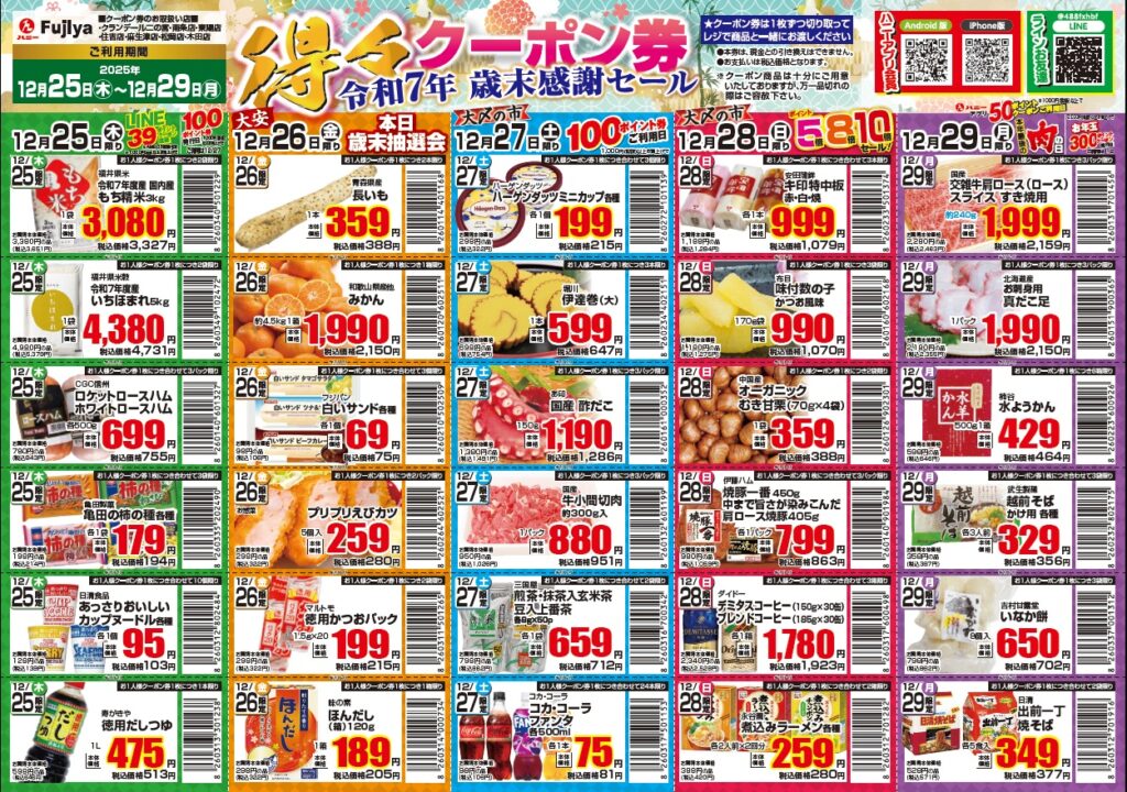 12月20日~24日〈クリスマスパワーセール富士屋得々クーポン券〉ご利用日のご案内