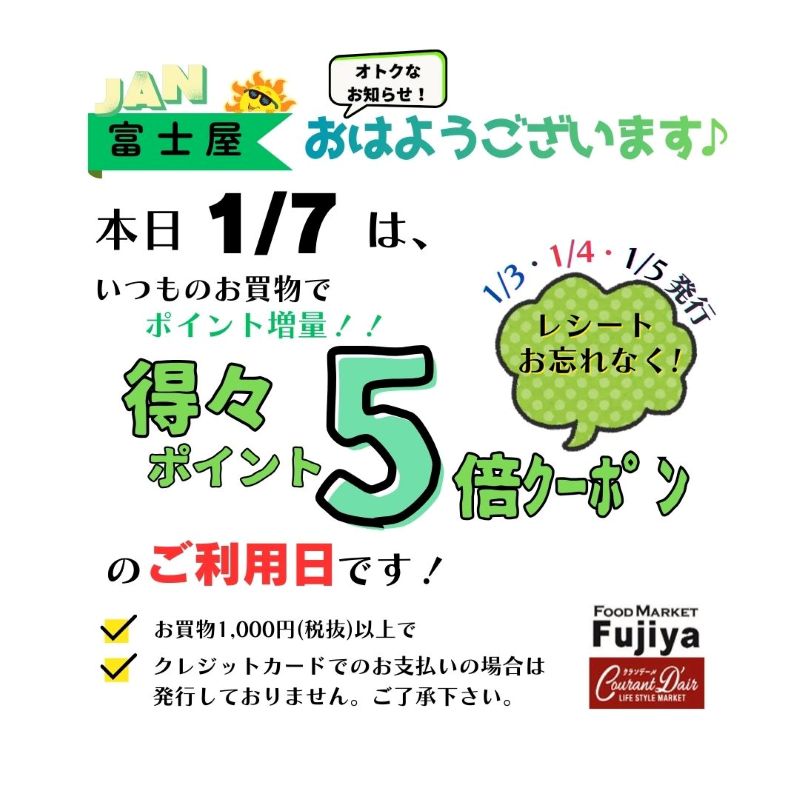 1月7日〈得々ポイント5倍クーポン〉ご利用日