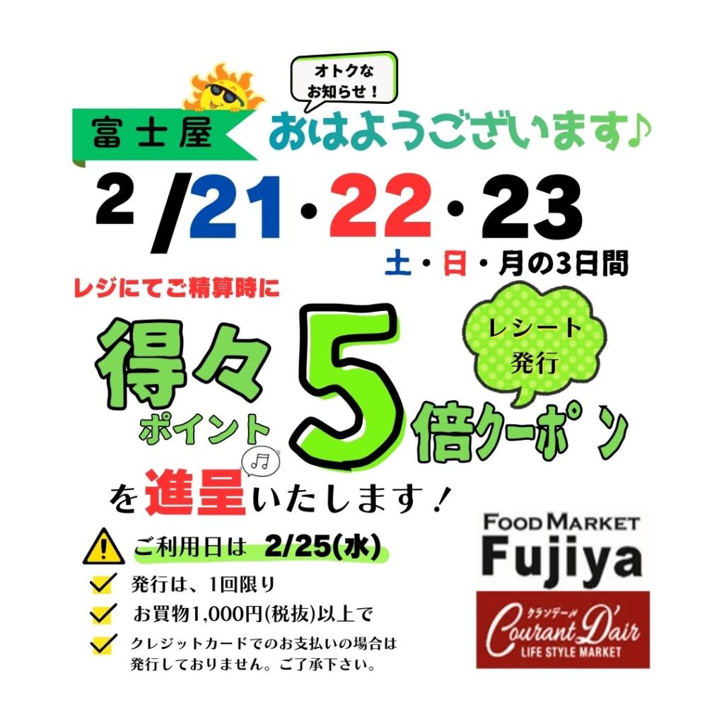 2月21日・22日・23日〈得々ポイント5倍クーポン〉進呈
