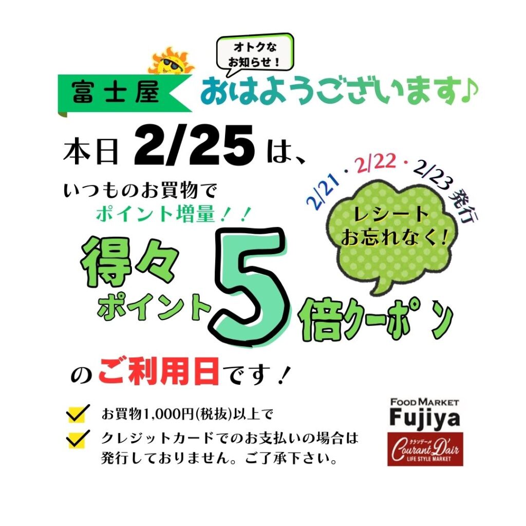 2月25日〈得々ポイント5倍クーポン〉ご利用日