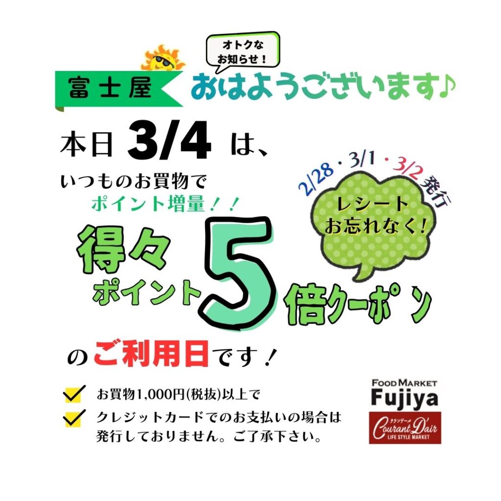3月4日〈得々ポイント5倍クーポン〉ご利用日