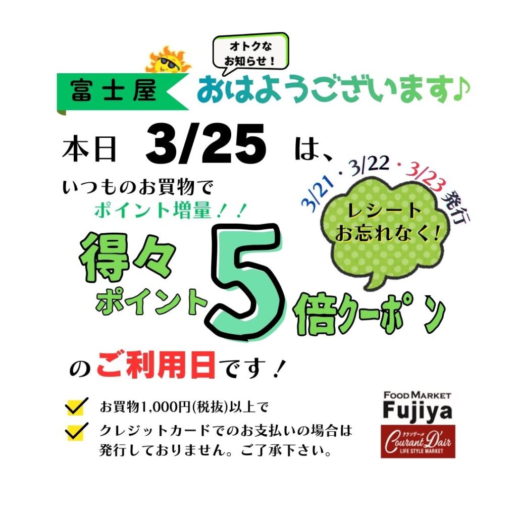 3月25日〈得々ポイント5倍クーポン〉ご利用日