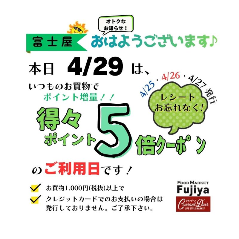 4月29日〈得々5倍クーポン〉ご利用日